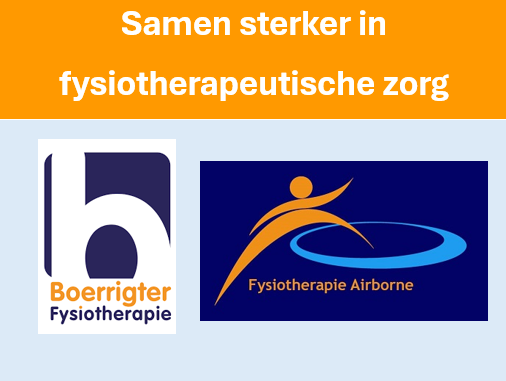 Per januari 2026 is Boerrigter Fysiotherapie overgenomen door John Klijsen, de praktijkeigenaar van Fysiotherapiepraktijken Airborne, Engelsbergen en Genderdal. Hiermee komen alle praktijken onder één gezamenlijke organisatie te vallen. Deze stap zetten wij om u ook in de toekomst goede, toegankelijke en deskundige fysiotherapeutische zorg te kunnen blijven bieden.